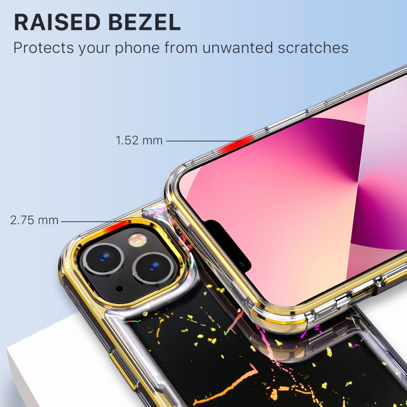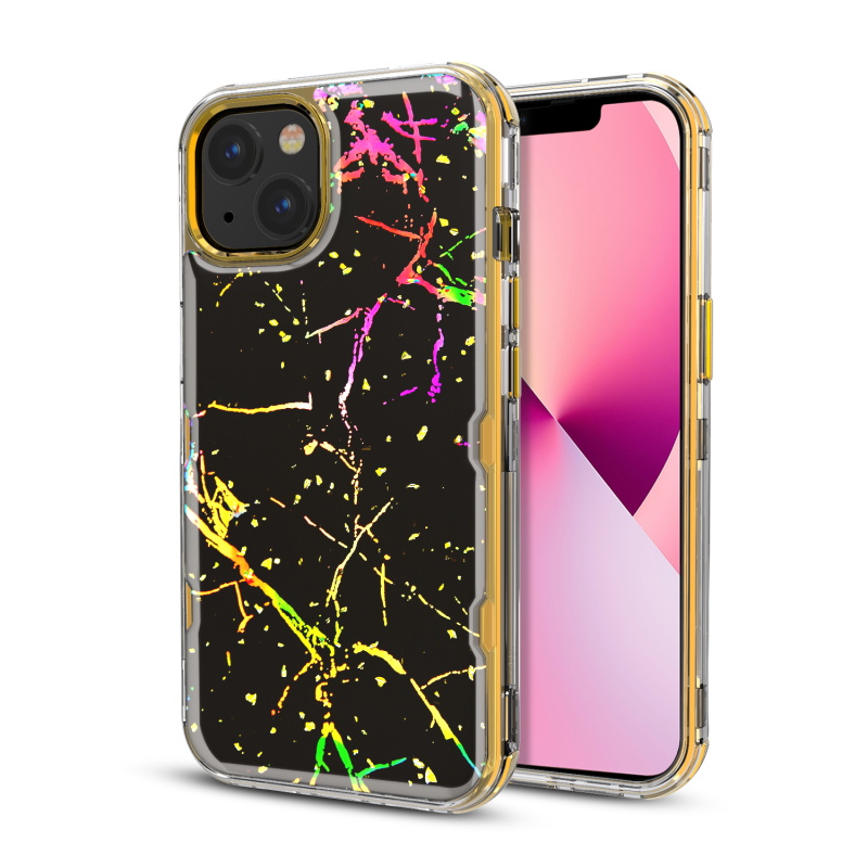 MyBat TUFF Kleer Hybrid Case for Apple iPhone 13 (6.1) - Black Marbling / Electroplating Gold