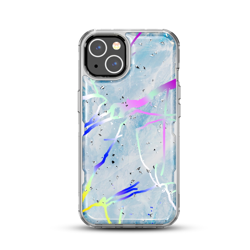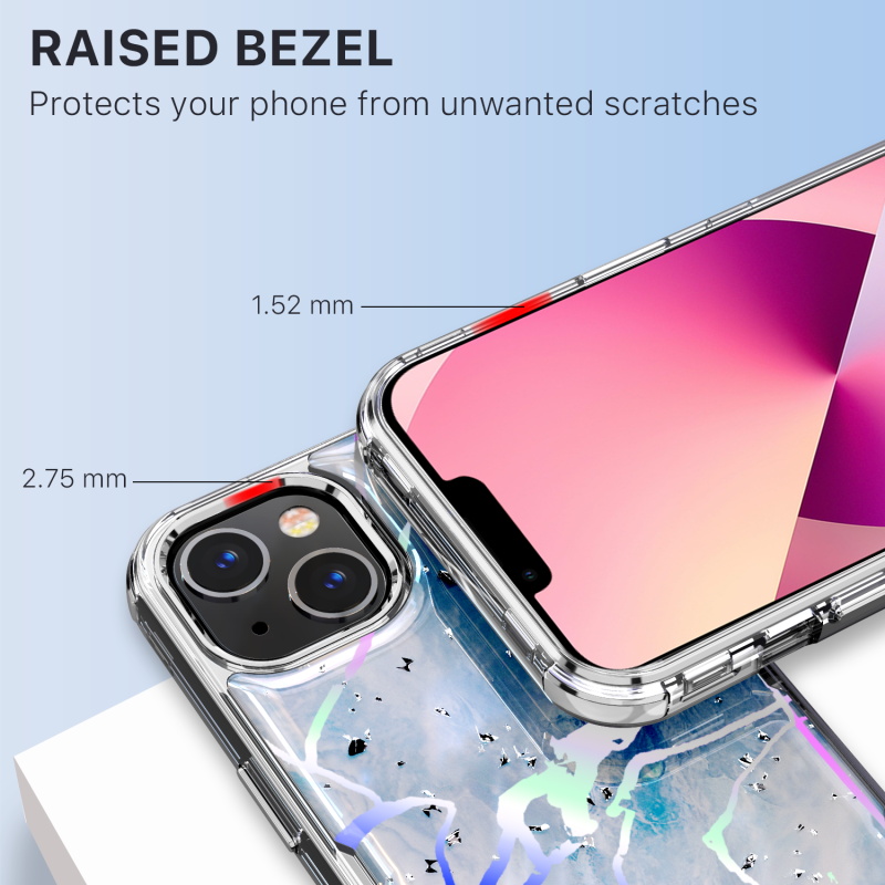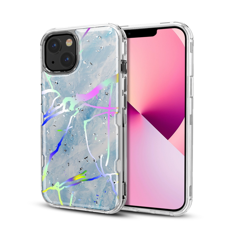 MyBat TUFF Kleer Hybrid Case for Apple iPhone 13 (6.1) - Blue Marbling / Electroplating Silver