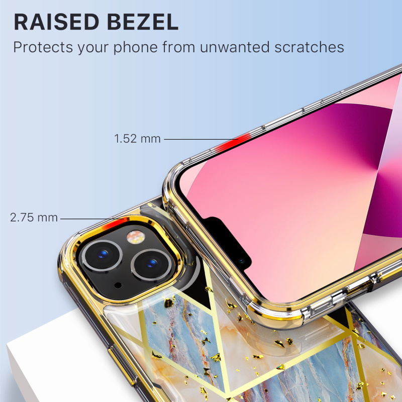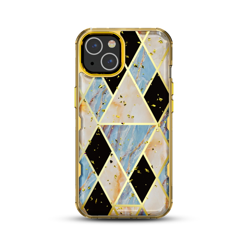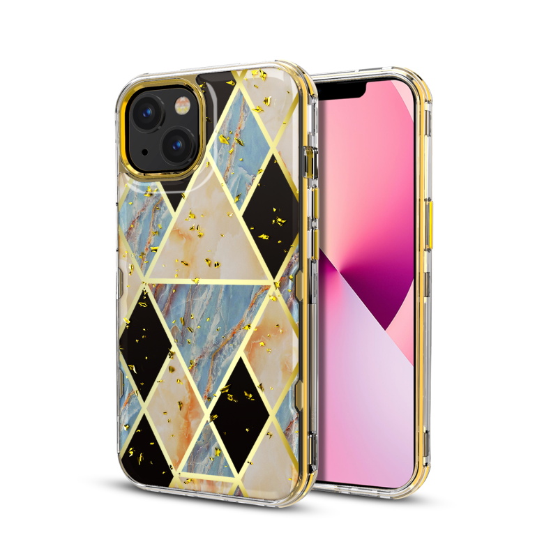 MyBat TUFF Kleer Hybrid Case for Apple iPhone 13 (6.1) - Electroplated Blue Marble / Electroplating Gold