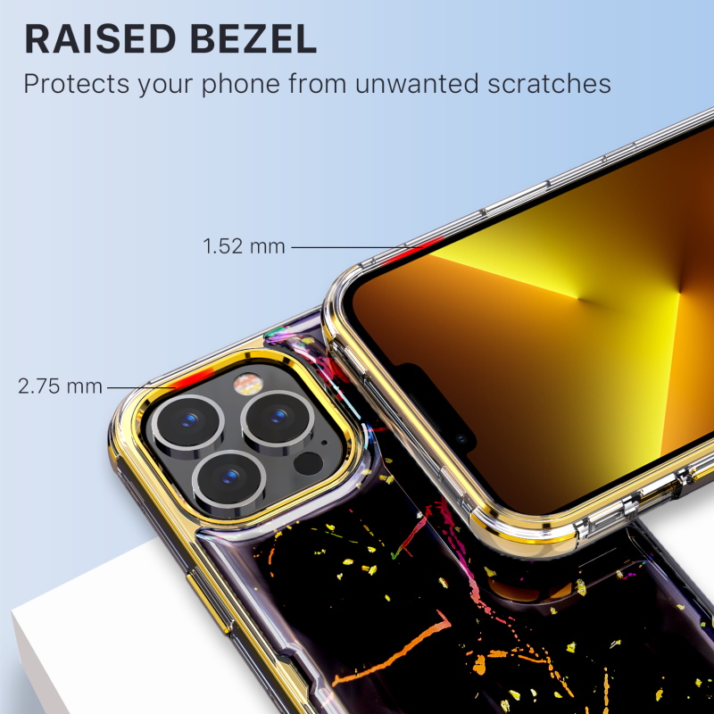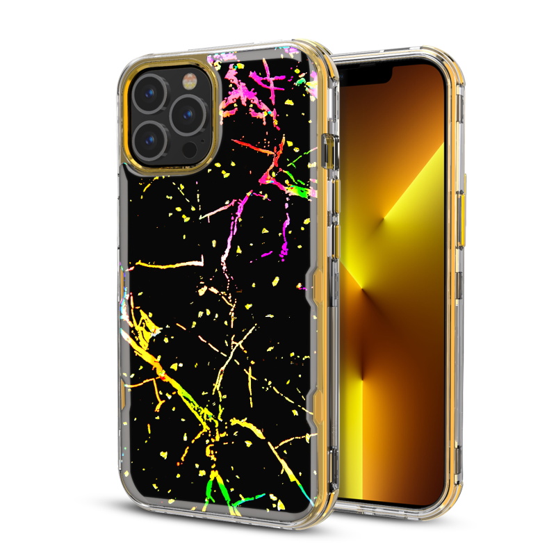 MyBat TUFF Kleer Hybrid Case for Apple iPhone 13 Pro (6.1) - Black Marbling / Electroplating Gold