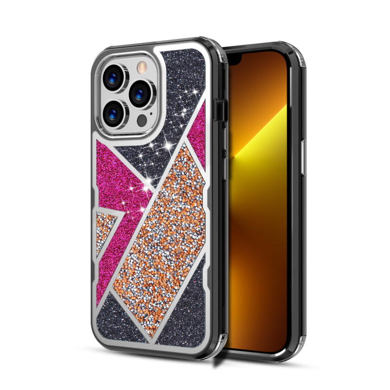 MyBat TUFF Kleer Hybrid Case for Apple iPhone 13 Pro (6.1) - Electroplated Black / Transparent Clear Mini Crystals & Glitter