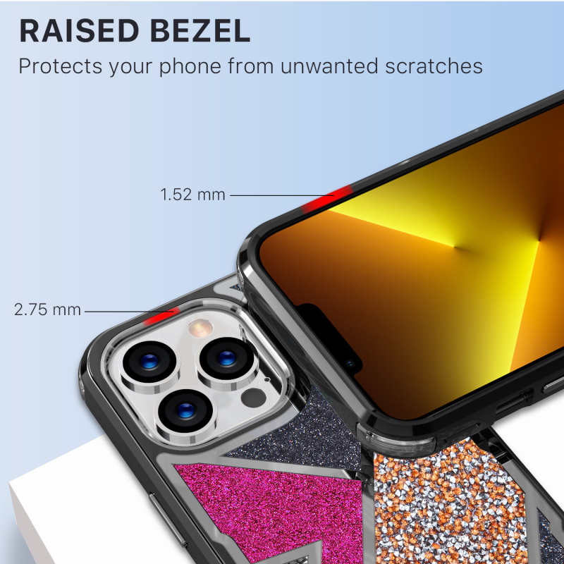 Sleek dual-layers hybrid case made of TPU bumper and PC back Impact-absorbing perimeter and air cushion corners guard the device against bumps and drops Precise openings for full access to all your phone’s ports and buttons. User friendly design to provide ease of installation and removal. Tightly packed encrusted rhinestones express the glamorous sparkling shine of the decorative design. Electroplated outer shell design brings out the stylish encrusted rhinestones.