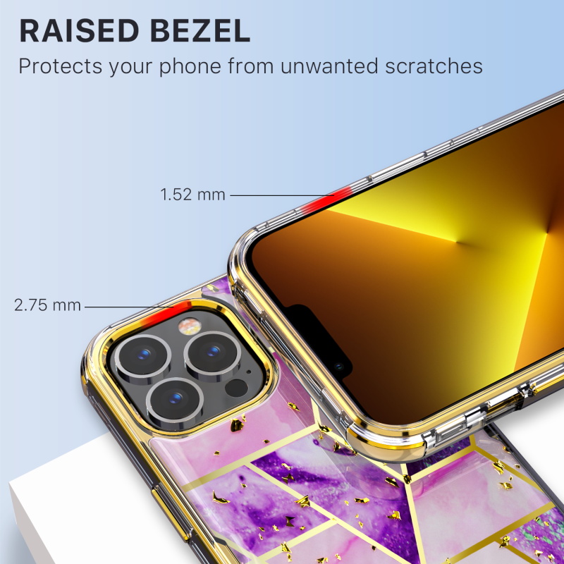 MyBat TUFF Kleer Hybrid Case for Apple iPhone 13 Pro (6.1) - Electroplated Purple Marble / Electroplating Gold