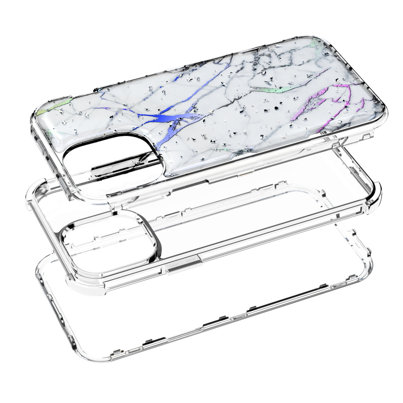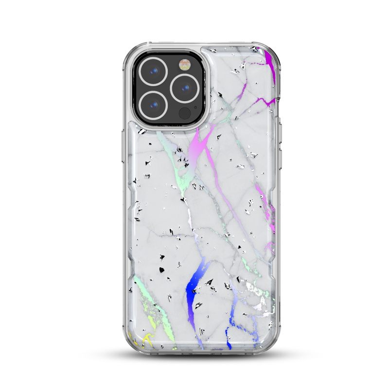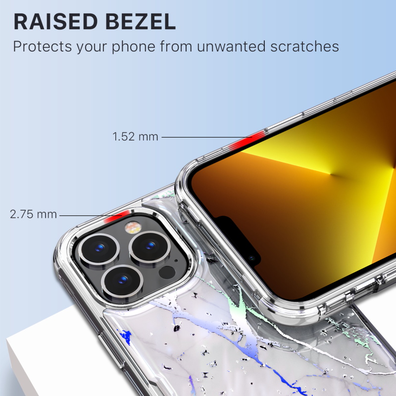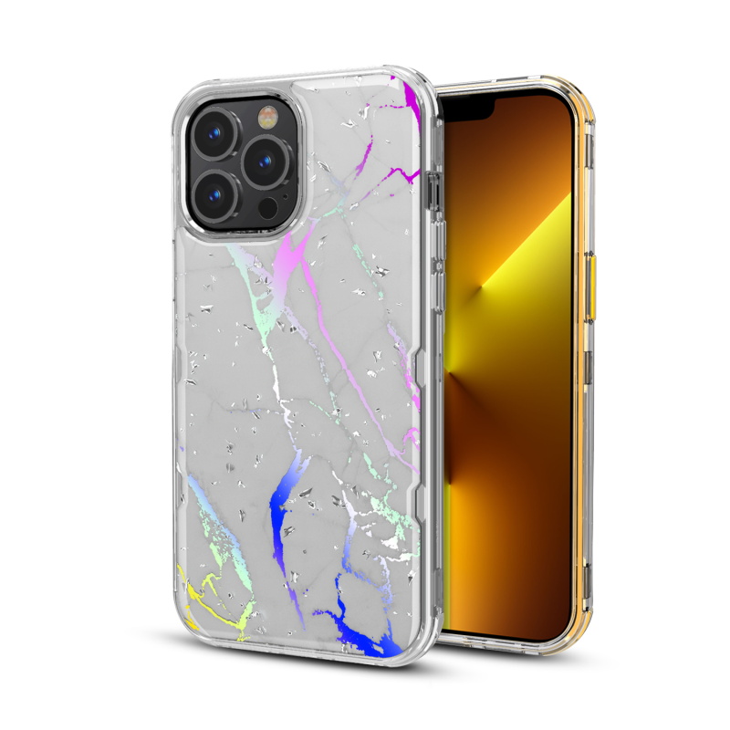 MyBat TUFF Kleer Hybrid Case for Apple iPhone 13 Pro (6.1) - White Marbling / Electroplating Silver
