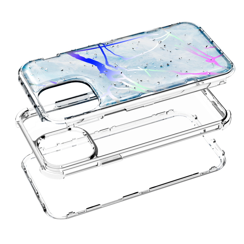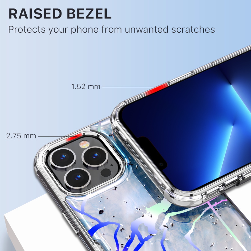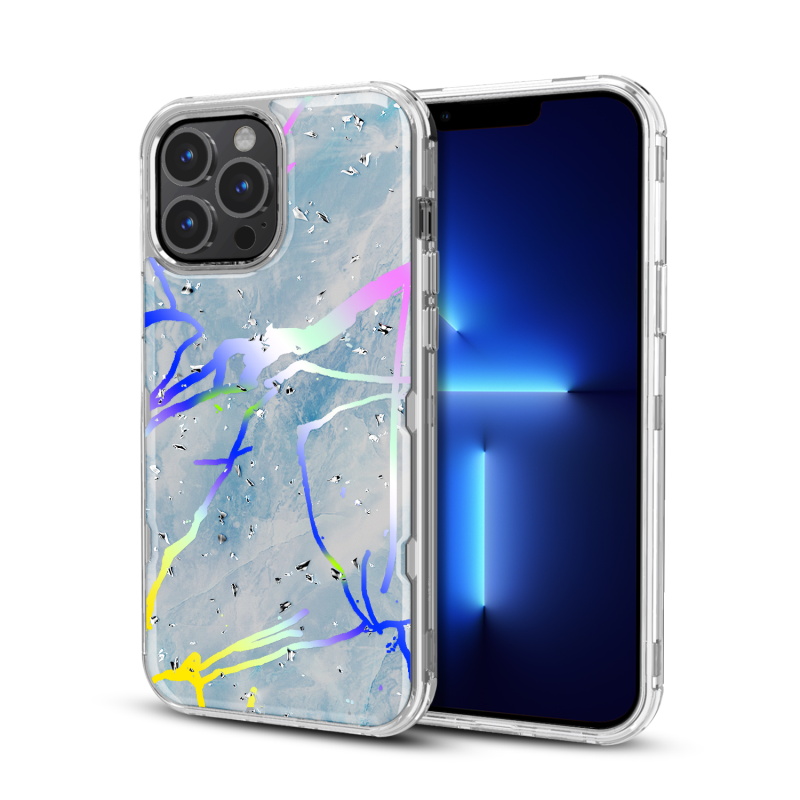 MyBat TUFF Kleer Hybrid Case for Apple iPhone 13 Pro Max (6.7) - Blue Marbling / Electroplating Silver