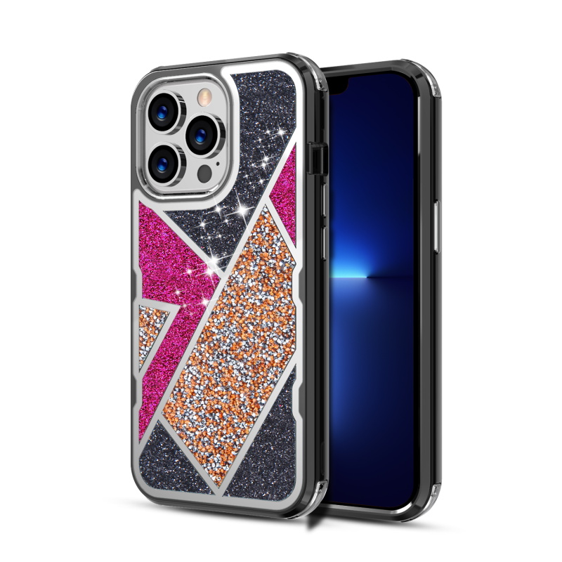 MyBat TUFF Kleer Hybrid Case for Apple iPhone 13 Pro Max (6.7) - Electroplated Black / Transparent Clear Mini Crystals & Glitter