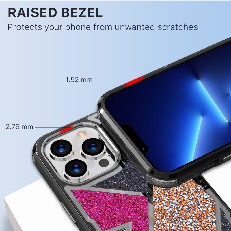 Sleek dual-layers hybrid case made of TPU bumper and PC back Impact-absorbing perimeter and air cushion corners guard the device against bumps and drops Precise openings for full access to all your phone’s ports and buttons. User friendly design to provide ease of installation and removal. Tightly packed encrusted rhinestones express the glamorous sparkling shine of the decorative design. Electroplated outer shell design brings out the stylish encrusted rhinestones.