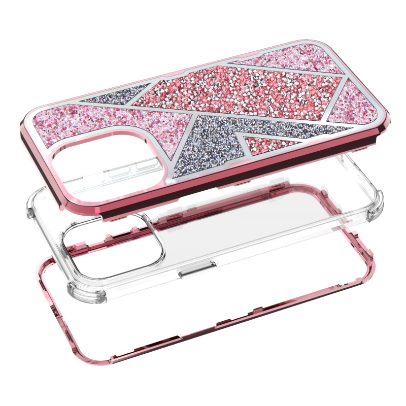 MyBat TUFF Kleer Hybrid Case for Apple iPhone 13 Pro Max (6.7) - Electroplated Rose Gold / Transparent Clear Mini Crystals & Glitter
