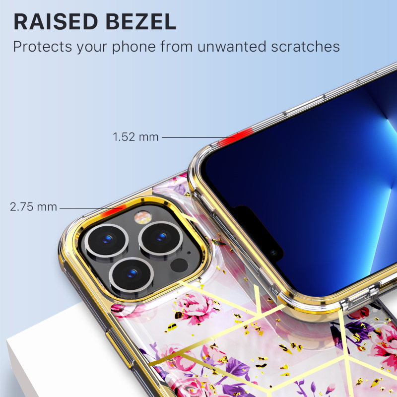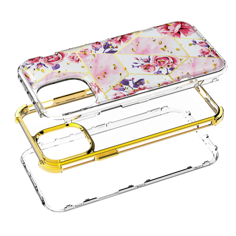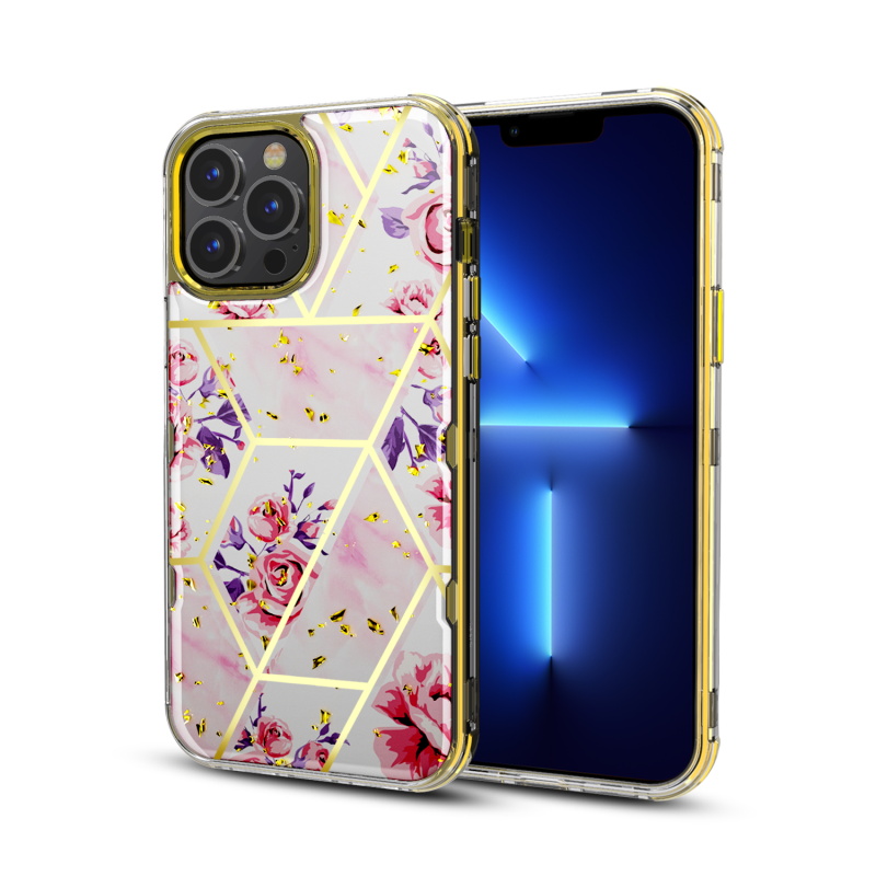 MyBat TUFF Kleer Hybrid Case for Apple iPhone 13 Pro Max (6.7) - Electroplated Roses Marble / Electroplating Gold