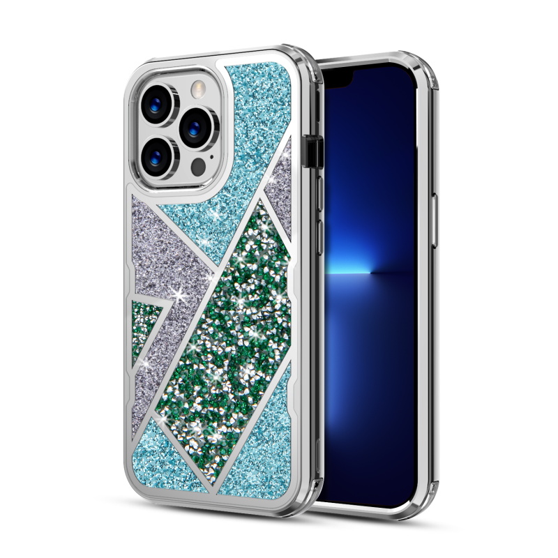 MyBat TUFF Kleer Hybrid Case for Apple iPhone 13 Pro Max (6.7) - Electroplated Silver / Transparent Clear Mini Crystals & Glitter