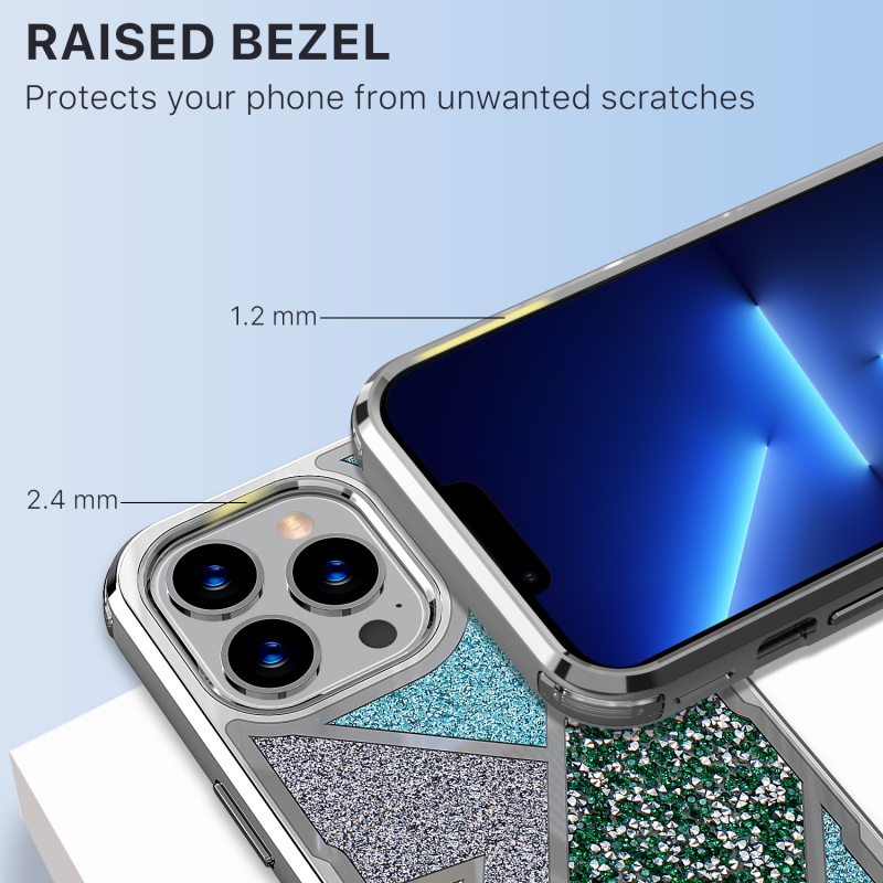 Sleek dual-layers hybrid case made of TPU bumper and PC back Impact-absorbing perimeter and air cushion corners guard the device against bumps and drops Precise openings for full access to all your phone’s ports and buttons. User friendly design to provide ease of installation and removal. Tightly packed encrusted rhinestones express the glamorous sparkling shine of the decorative design. Electroplated outer shell design brings out the stylish encrusted rhinestones.