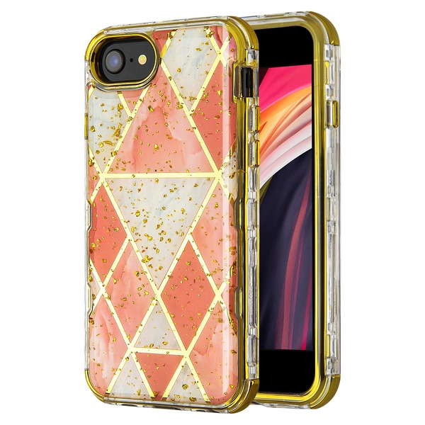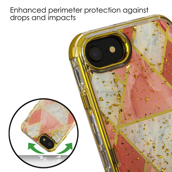 MyBat TUFF Kleer Hybrid Case for Apple iPhone SE (2020)/iPhone SE (2022) / 8/7 - Electroplated Pink Marble / Electroplating Gold