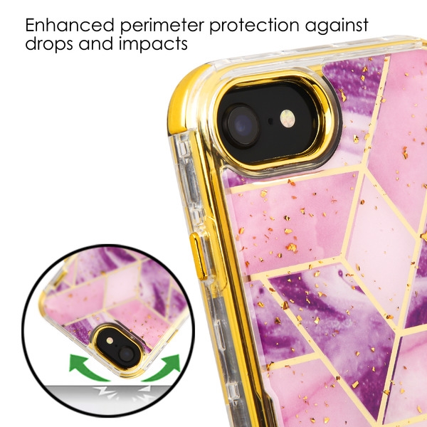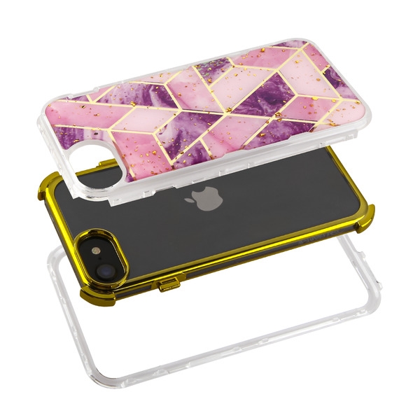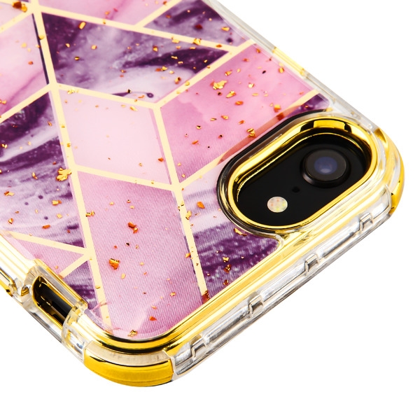 MyBat TUFF Kleer Hybrid Case for Apple iPhone SE (2020)/iPhone SE (2022) / 8/7 - Electroplated Purple Marble / Electroplating Gold