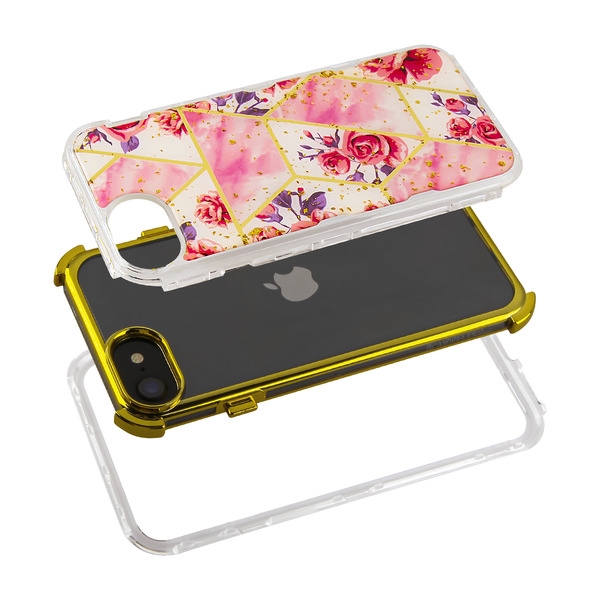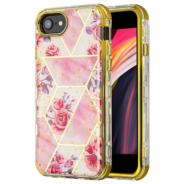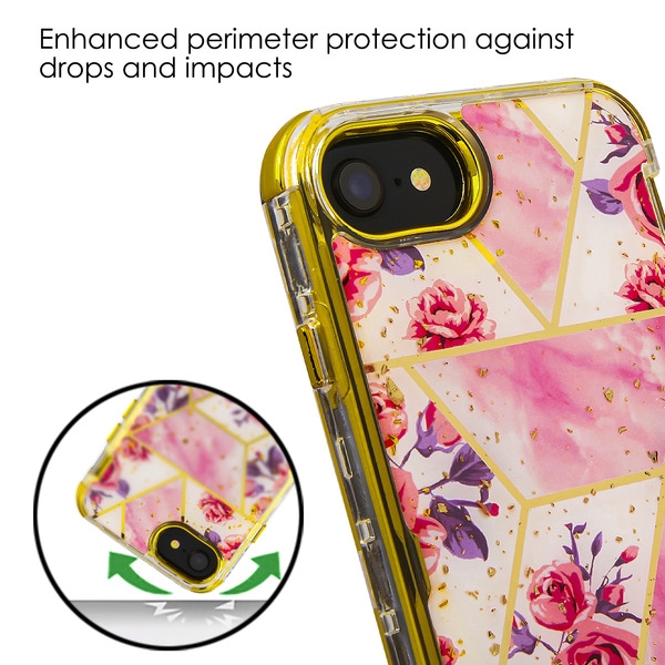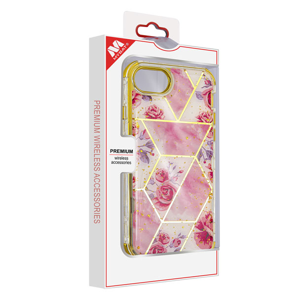 MyBat TUFF Kleer Hybrid Case for Apple iPhone SE (2020)/iPhone SE (2022) / 8/7 - Electroplated Roses Marble / Electroplating Gold