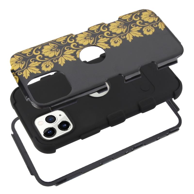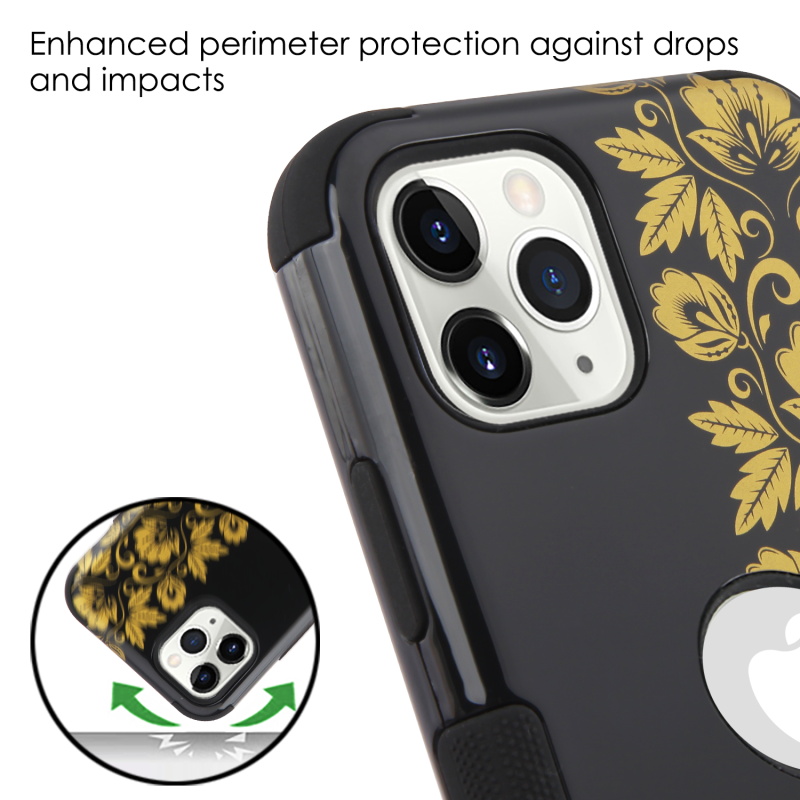 MyBat TUFF Series Case for Apple iPhone 11 Pro Max - Gold Floral Stripe / Black