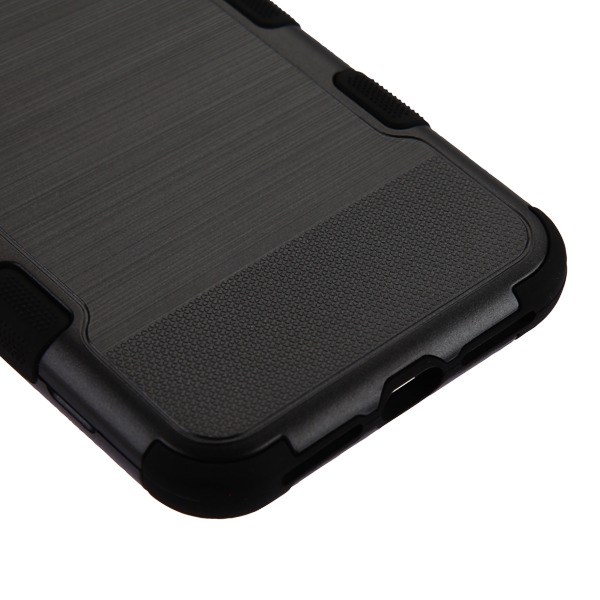 Two-piece hybrid design with rubberized slip-on case and PC hard-shell Unique brushed-metal design for a sleek sophisticated look and feel Soft inner core absorbs shock and cushions the phone from drops and impact Raised front bezel elevates the phone’s screen to prevent tabletop scratches Extended padding protects the vulnerable corners and edges from impact Meets military drop-test standard (MIL-STD 810G-516.6)