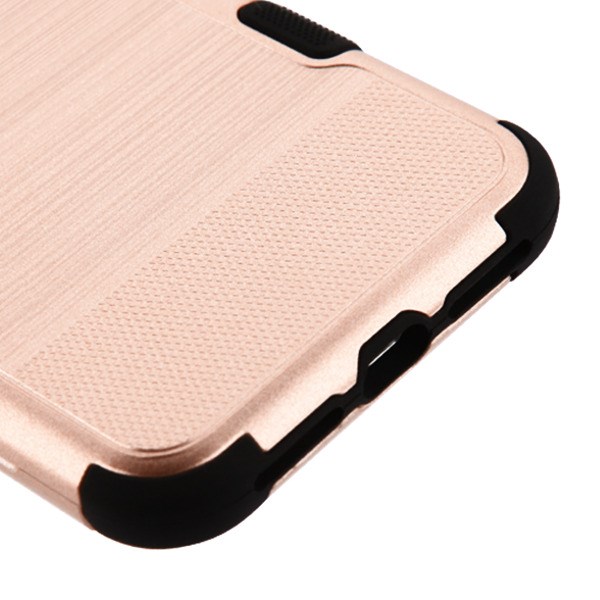 Two-piece hybrid design with rubberized slip-on case and PC hard-shell Unique brushed-metal design for a sleek sophisticated look and feel Soft inner core absorbs shock and cushions the phone from drops and impact Raised front bezel elevates the phone’s screen to prevent tabletop scratches Extended padding protects the vulnerable corners and edges from impact Meets military drop-test standard (MIL-STD 810G-516.6)
