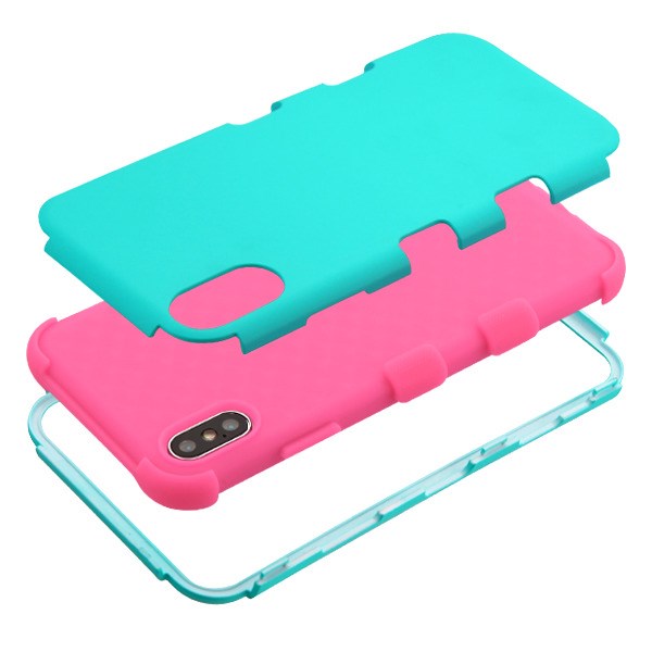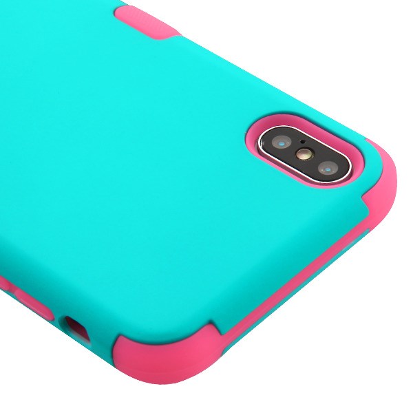 MyBat TUFF Series Case for Apple iPhone XS Max - Rubberized Teal Green / Electric Pink