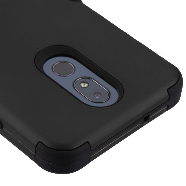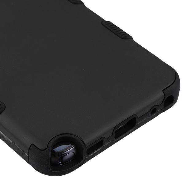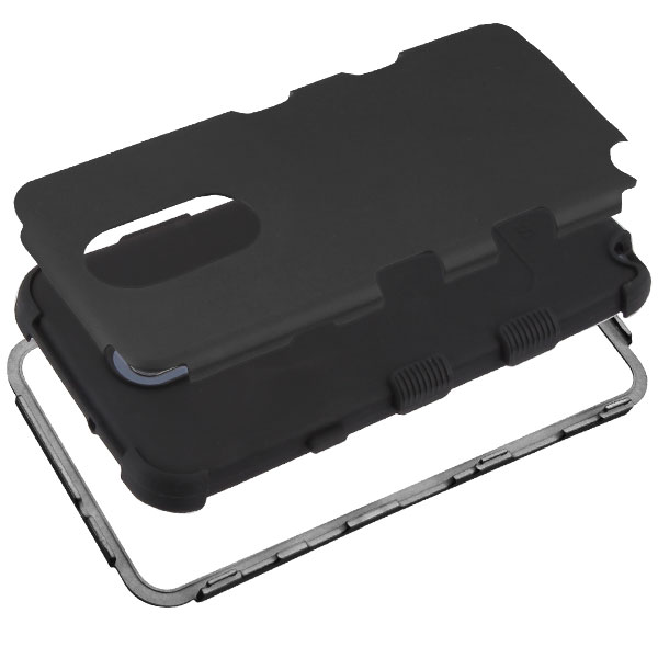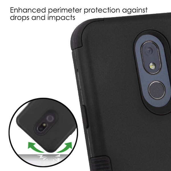 Patented hybrid case with textured metallic PC hard-shell and rubberized inner core Soft inner core absorbs shock and cushions the phone from drops and impact Raised front bezel elevates the phone’s screen to prevent tabletop scratches Extended padding protects the vulnerable corners and edges from impact Integrated kickstand easily props the phone to a comfortable viewing angle Meets military drop-test standard (MIL-STD 810G-516.6)