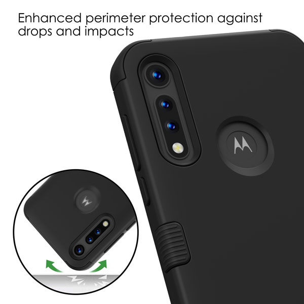 Patented hybrid design with PC hard-shell and rubberized inner core Soft inner core absorbs shock and cushions the phone from drops and impact Raised front bezel elevates the phone’s screen to prevent tabletop scratches Extended padding protects the vulnerable corners and edges from impact Meets military drop-test standard (MIL-STD 810G-516.6)