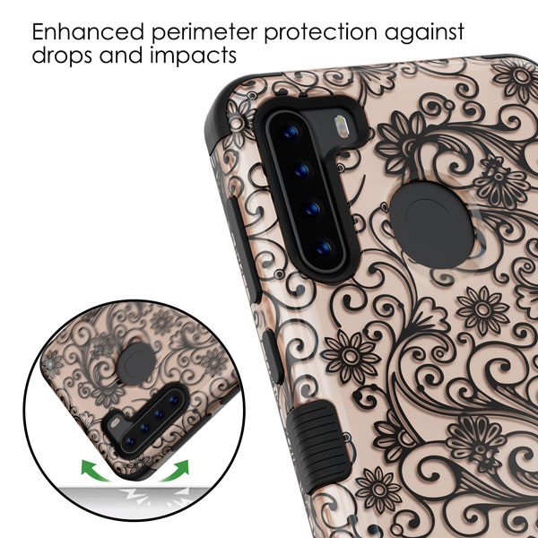 Patented hybrid design with PC hard-shell and rubberized inner core Soft inner core absorbs shock and cushions the phone from drops and impact Raised front bezel elevates the phone’s screen to prevent tabletop scratches Extended padding protects the vulnerable corners and edges from impact Meets military drop-test standard (MIL-STD 810G-516.6)