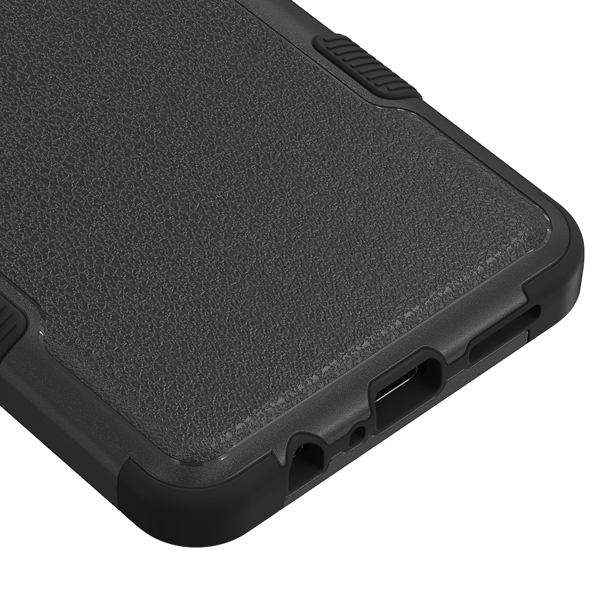 Patented hybrid case with textured metallic PC hard-shell and rubberized inner core Soft inner core absorbs shock and cushions the phone from drops and impact Raised front bezel elevates the phone’s screen to prevent tabletop scratches Extended padding protects the vulnerable corners and edges from impact Meets military drop-test standard (MIL-STD 810G-516.6)