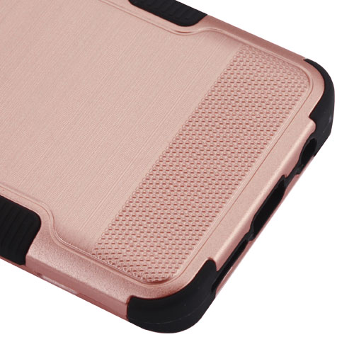 Two-piece hybrid design with rubberized slip-on case and PC hard-shell Unique brushed-metal design for a sleek sophisticated look and feel Soft inner core absorbs shock and cushions the phone from drops and impact Raised front bezel elevates the phone’s screen to prevent tabletop scratches Extended padding protects the vulnerable corners and edges from impact Meets military drop-test standard (MIL-STD 810G-516.6)