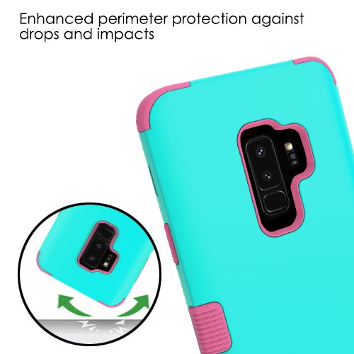 MyBat TUFF Series Case for Samsung Galaxy S9 Plus - Rubberized Teal Green / Electric Pink
