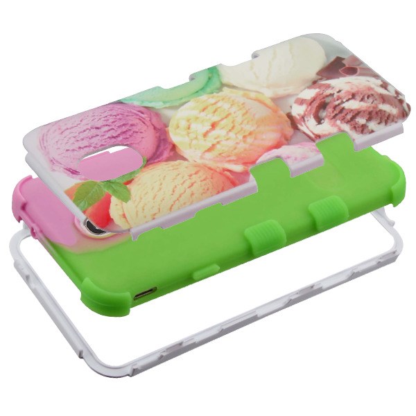 MyBat TUFF Series Case for Samsung J737P (Galaxy J7 (2018))/Galaxy J7 Star / Galaxy J7 V 2nd Gen - Ice Cream Scoops / Electric Green & Soft Pink
