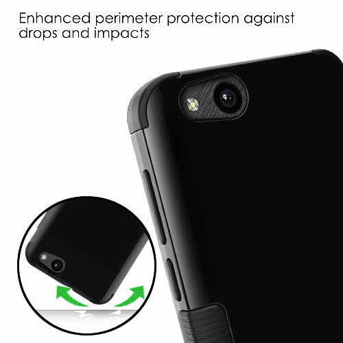 Patented hybrid design with PC hard-shell and rubberized inner core Soft inner core absorbs shock and cushions the phone from drops and impact Raised front bezel elevates the phone’s screen to prevent tabletop scratches Extended padding protects the vulnerable corners and edges from impact Meets military drop-test standard (MIL-STD 810G-516.6)
