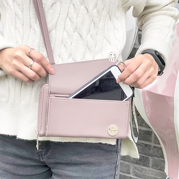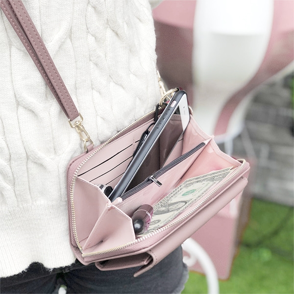 Durable, reinforced stitching with sophisticated leather finish gives the case a high-end fashionable look Secure, zip-around closure keeps the cards and cash hidden and safe Smartphone pouch with clasp makes it easy to access your device Removable chain-link strap allows you to style the MyJacket Wallet as a crossbody or as a clutch