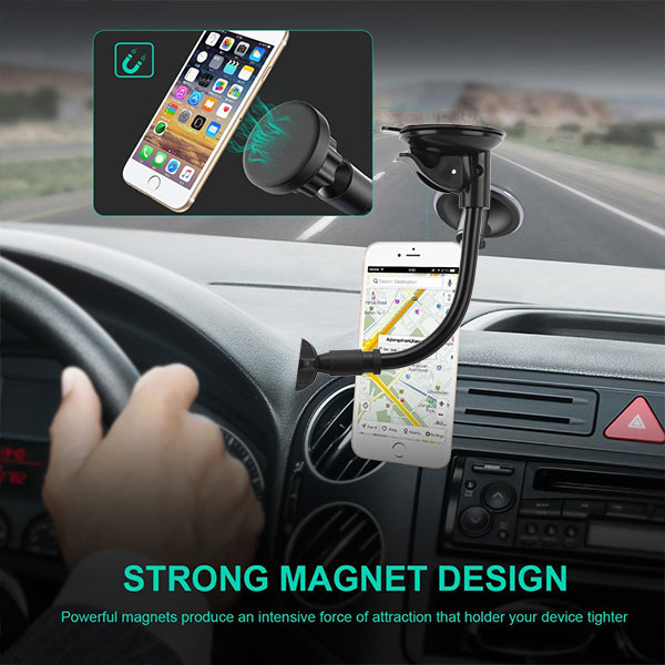 Long flexible,soft but steady thick arm/gooseneck.Comfort to adjust to best view. Enhanced strong suction with switch for quick use,well adhere to your windshield or dashboard. Full 360 degree rotation head,mount your phone in your prefered angle. Easy to Use.Locks, releases or rotates the device with just one hand operation.