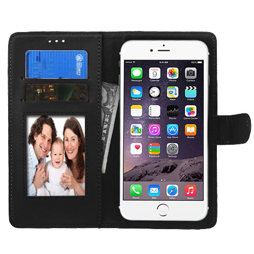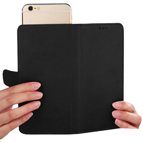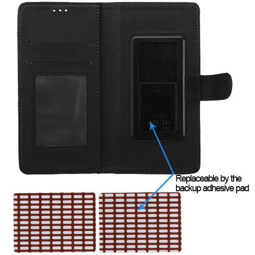 Compatible with phones with display size of 5.2"-6.0" This case is a wallet style case. The interior also has two slots where you can put your credit cards, ID card, etc. The case allows full access to all ports, buttons. When taking pictures, you can just push the phone up without taking the phone out of the cover. Add protection and style to your phone with this chic and fashionable wallet wristlet case. Tip: 2 more “3M” adhesive pads available for your replacement when the original adhesive pad is losing adhesion Dimension of the pouch is 6 1/2” (L) x 3 1/8” (H) x 3/8” (W)