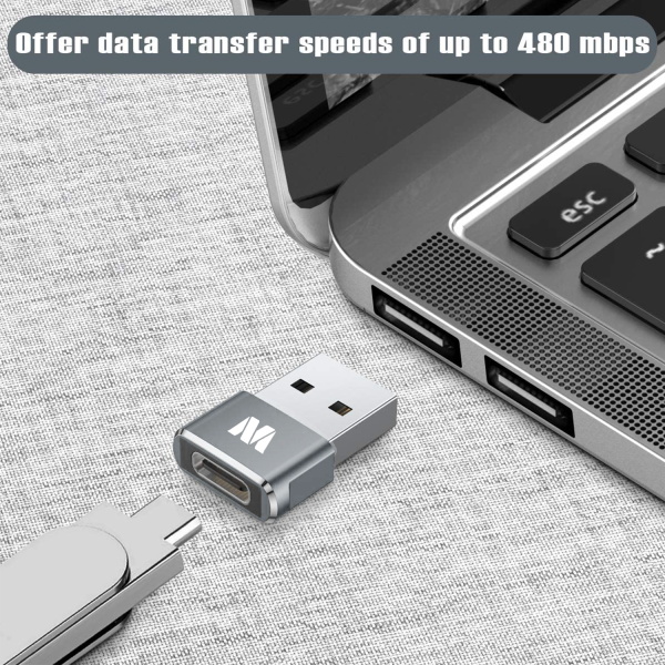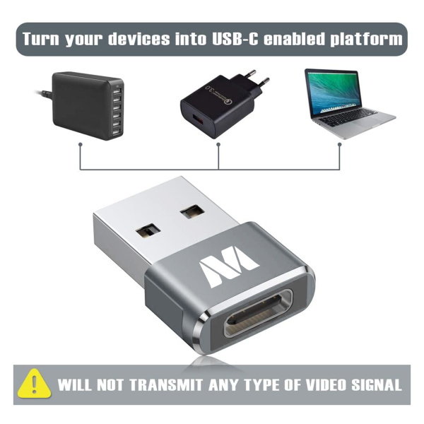 Make sure your customers don't throw away their legacy cables. Convert their cables and ports to high-speed USB-C with this USB-C Female to USB-A Male Adapter from MyBat. It is available in attractive packaging that makes it stand out on the shelf and shows off the product beautifully, making it an ideal addition to your inventory. As USB-C becomes more and more popular in laptops and computers, the USB-C Female to USB-A Male Adapter allows your customers to quickly upgrade their older devices with legacy USB-A ports to work with new USB-C cables. Designed to fit perfectly into their USB-A ports without taking up much space, the ultra-compact adapter enables an incredible 480Mbps of data transfer and 10W of charging power! With the aluminum alloy exterior, your customers can safely charge and sync without the worry of overheating. MyBat offers a limited one-year warranty for the USB-C Female to USB-A Male Adapter, ensuring the best quality, performance, and customer satisfaction. Features: Convert USB-A to USB-C High-Speed 480Mbps Data Transfer Supports Up to 10W Charging Aluminum Alloy Construction Low-Heat Operation 1-Year Warranty