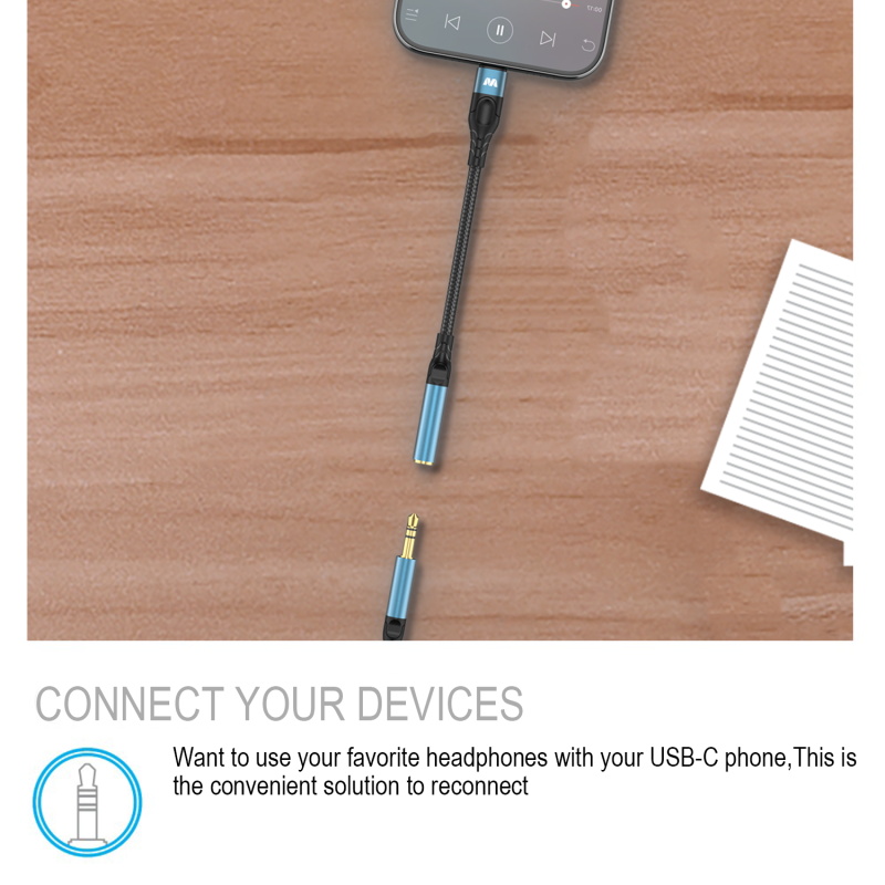 Using the USB-C to 3.5mm Audio Adapter from MyBat, your customers can do more than charge their Android devices from its only port. Once again, they can plug in listen to music using wired headphones or auxiliary devices and cables. It is available in attractive packaging that makes it stand out on the shelf and shows off the product beautifully, making it an ideal addition to your inventory. Customers can connect the 3.5mm Adapter to any device with a USB-C port to listen to audio on their favorite wired headphones, headsets, connect to older cars, or devices without Bluetooth. The 3" adapter won't tangle or cause excess length issues, and it is highly durable due to its reinforced relief collar and flexible protective cover. MyBat offers a limited one-year warranty for the USB-C to 3.5mm Audio Adapter, ensuring the best quality, performance, and customer satisfaction. Features: Made for USB-C Devices USB-C Connector 3.5mm Auxilary Port Seamless Plug & Play Unrivaled Durability Incredible Bend Lifetime Braided Nylon Construction 1-Year Warranty