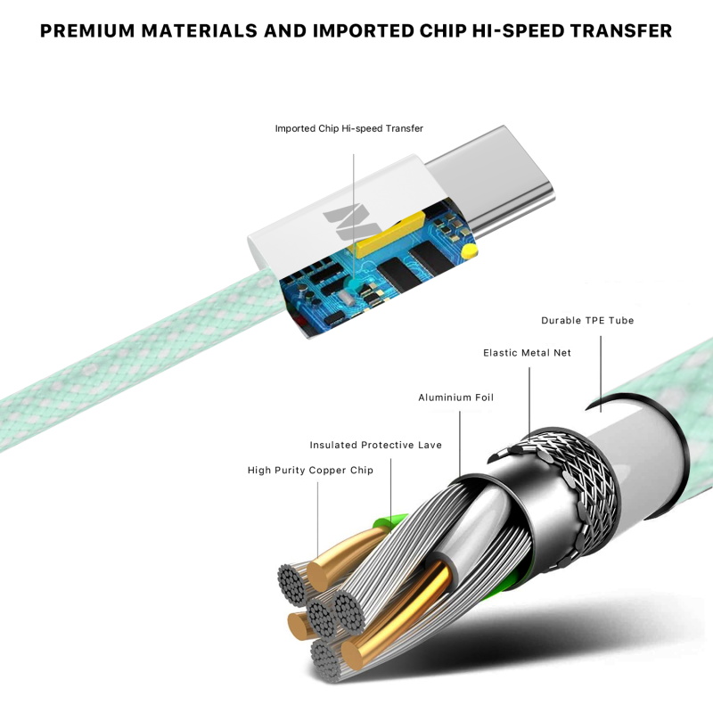 MyBat USB-C to USB-C Premium Braided Cable (L=3 FT) - Green
