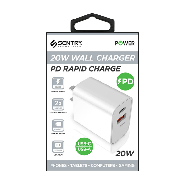 PD 20w Dual Port Wall Charger w. USB-C & USB-A