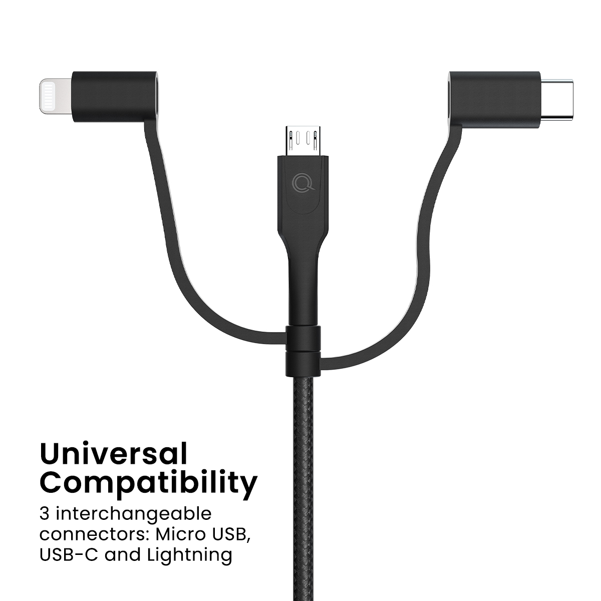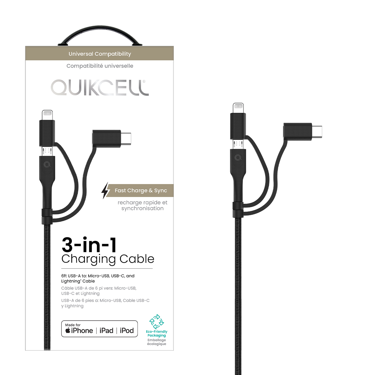 Quikcell 3-IN-1 Charging CABLE USB-A to Micro USB/USB-C/Lightning