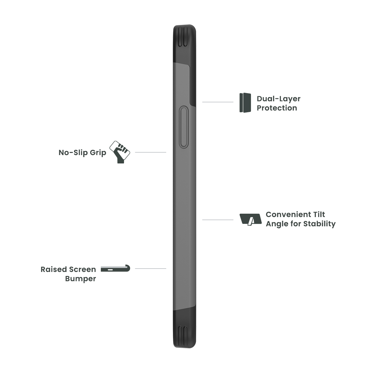 Tough-as-nails kickstand provides ultimate stability for multi-angle tilt viewing