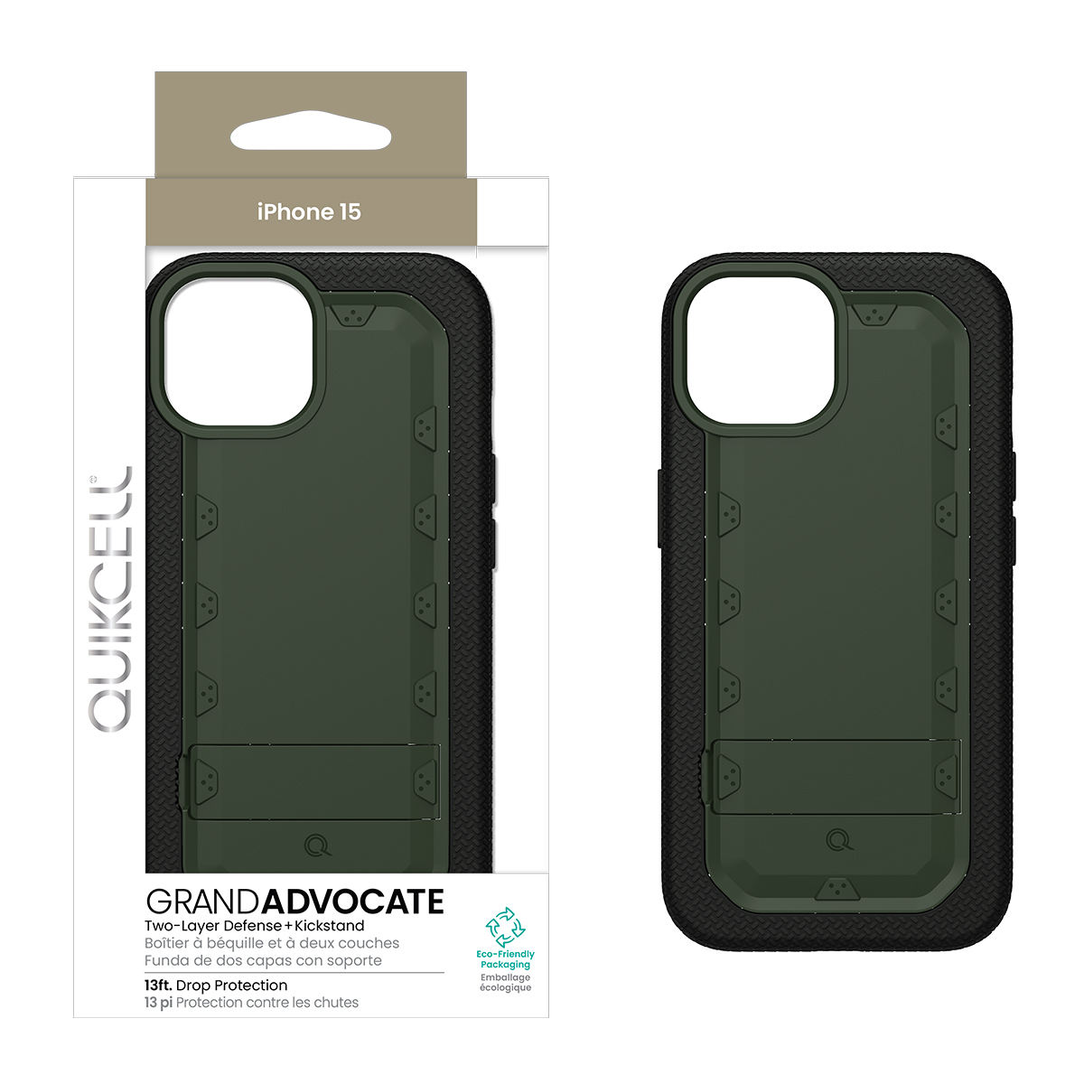Quikcell Apple iPhone 15 Grand ADVOCATE Dual-Layer Kickstand Case – Army Green