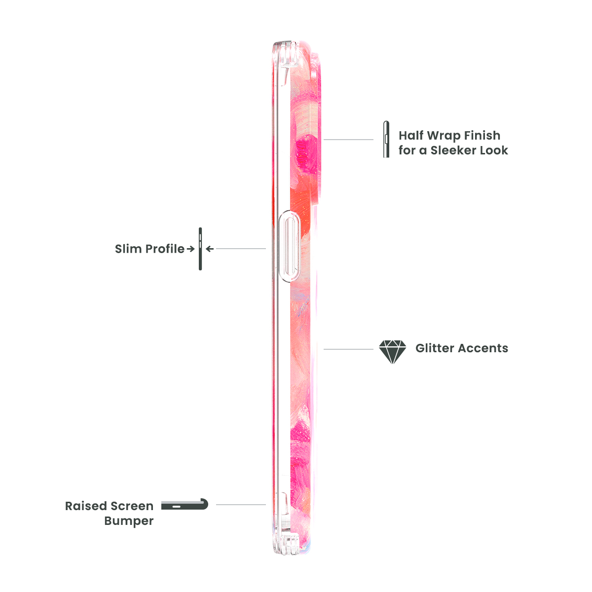 More than just a pretty face. Say hello to a fashion case that is capable of being both fashionable and withstanding impact. The half-wrap printing method used on all our fashion cases takes the design and covers the phone case, extending over the curves and edges to provide a seamless, more upscale appearance. And to boost the protection, we increased the thickness by 10%. Providing added cushion to protect phones from drops and falls, and also helping to preserve the case's construction for extended use over time. An Icon case offers the best of both worlds - protection & fashion.