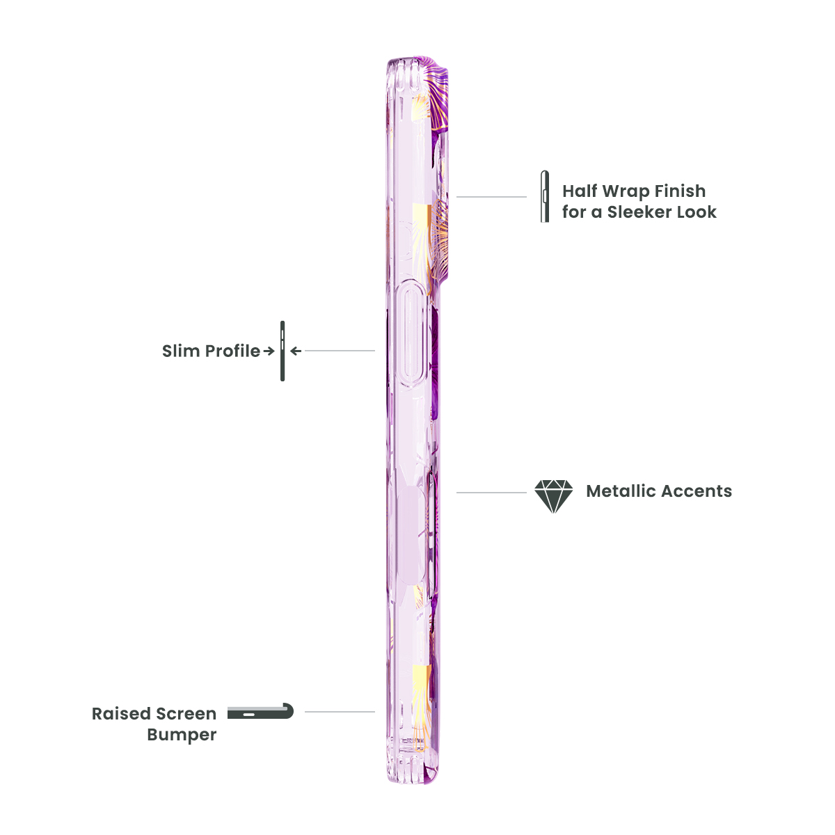 More than just a pretty face. Say hello to a fashion case that is capable of being both fashionable and withstanding impact. The half-wrap printing method used on all our fashion cases takes the design and covers the phone case, extending over the curves and edges to provide a seamless, more upscale appearance. And to boost the protection, we increased the thickness by 10%. Providing added cushion to protect phones from drops and falls, and also helping to preserve the case's construction for extended use over time. An Icon case offers the best of both worlds - protection & fashion.