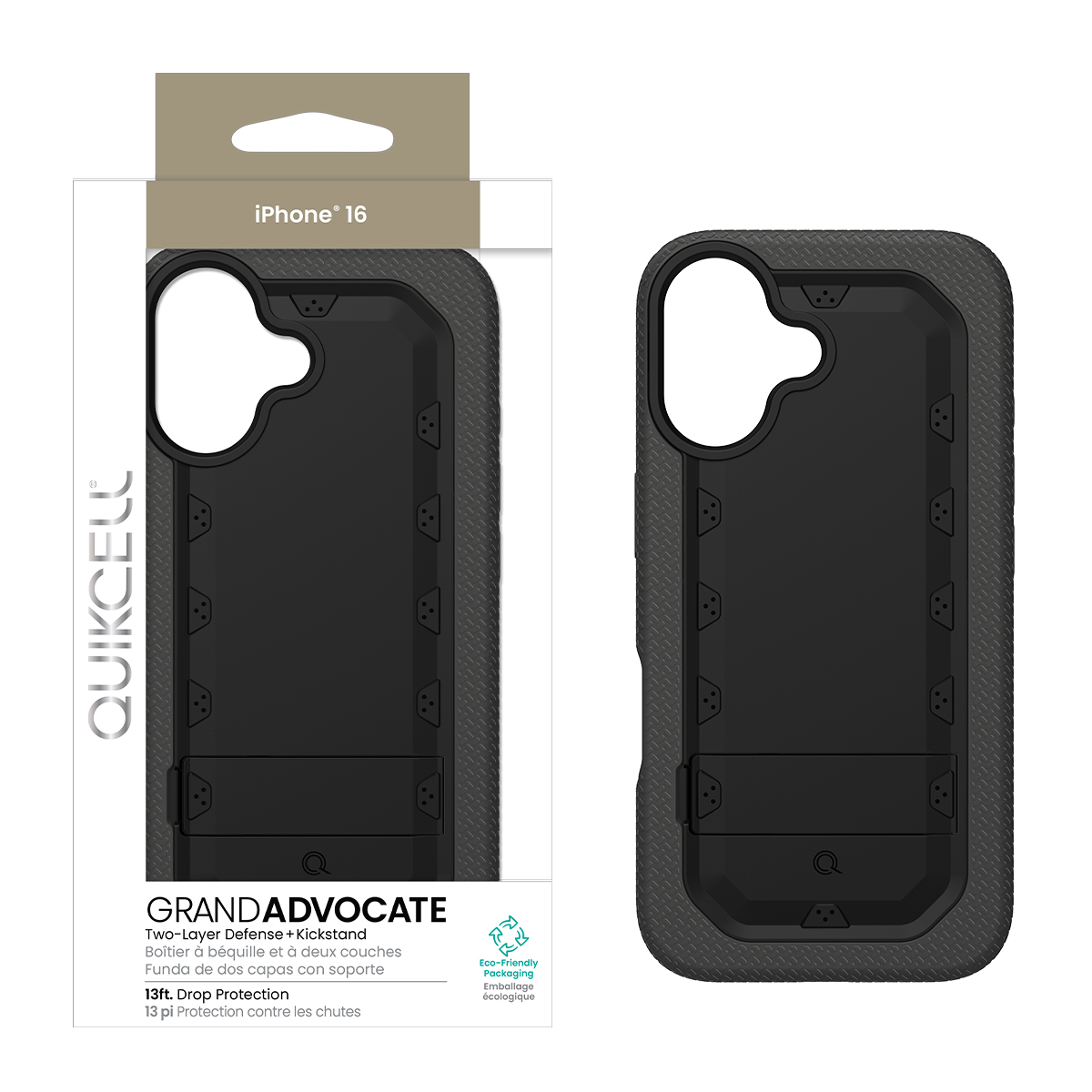 Quikcell Apple iPhone 16 Grand ADVOCATE Dual-Layer Kickstand Case – Armor Black