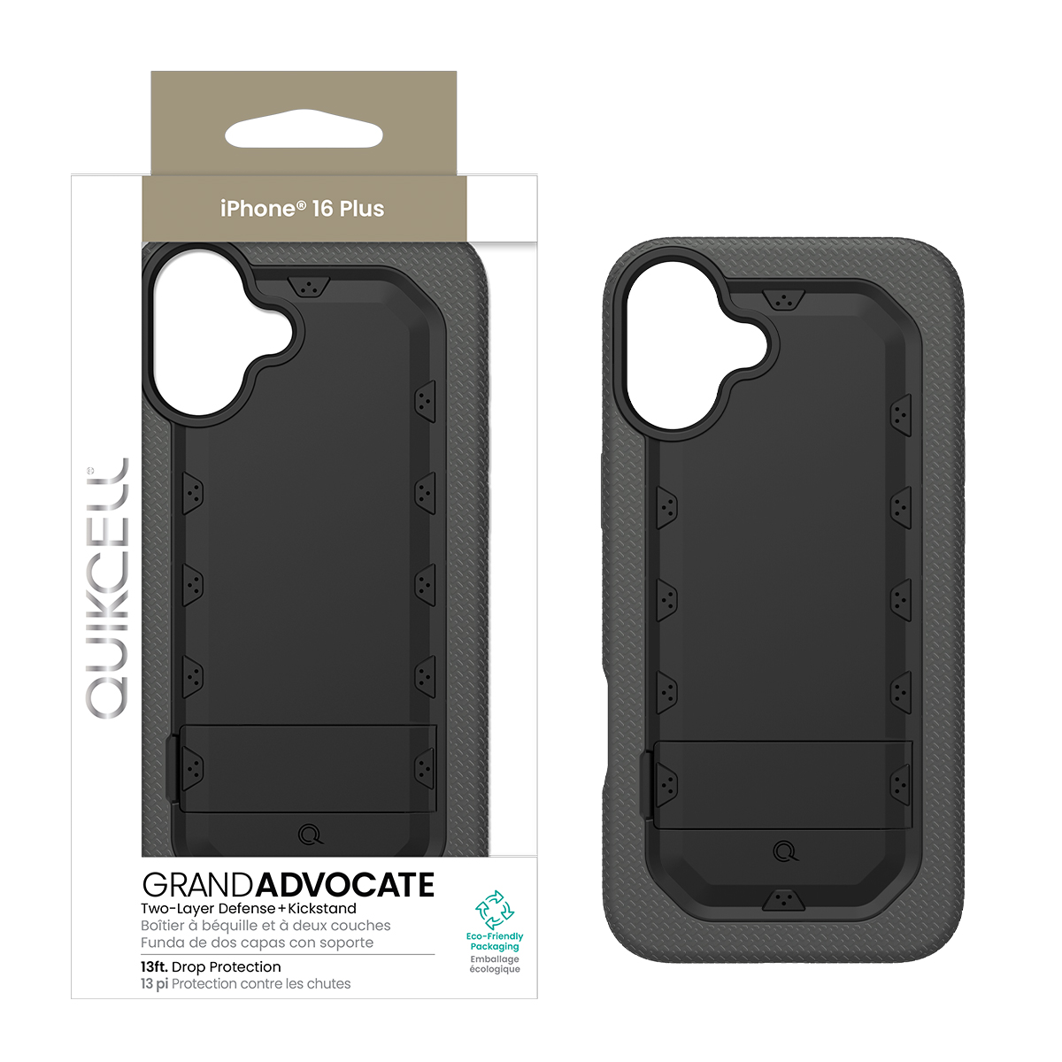 Quikcell Apple iPhone 16 Plus Grand ADVOCATE Dual-Layer Kickstand Case – Armor Black