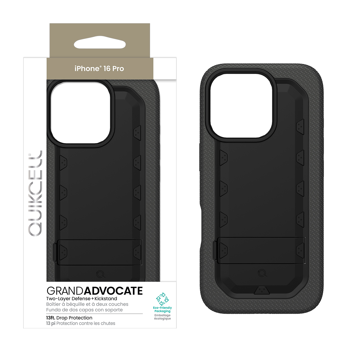 Quikcell Apple iPhone 16 Pro Grand ADVOCATE Dual-Layer Kickstand Case – Armor Black