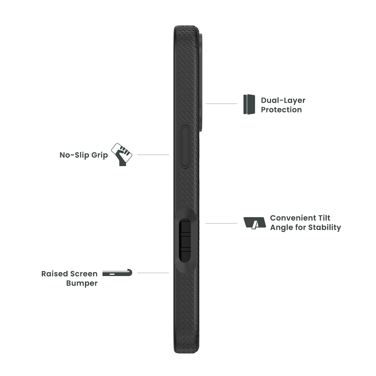 Expertly engineered kickstand provides ultimate stability for multi-angle tilt viewing