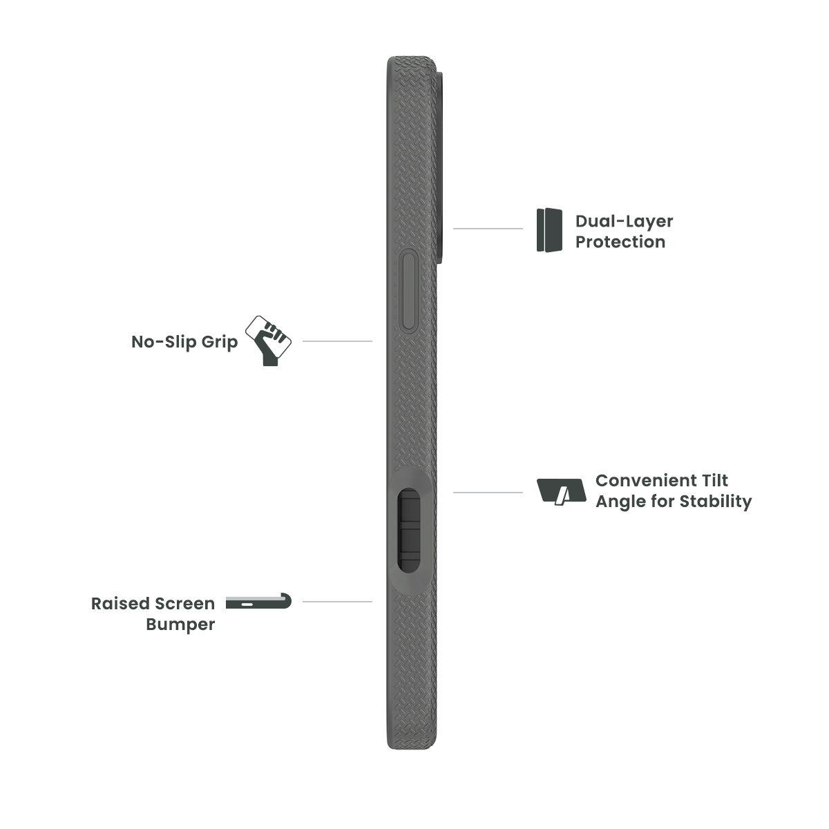 Meet a new take on the standard kickstand case. One that blends rugged protection and everyday style. Equipped with dual layers of premium materials: a shock-resistant core and a tough outer shell. Combined with precision engineering, 360 degrees of protective features & an unrivaled lifetime warranty, the Grand Advocate is a case that gives you the ultimate peace of mind.