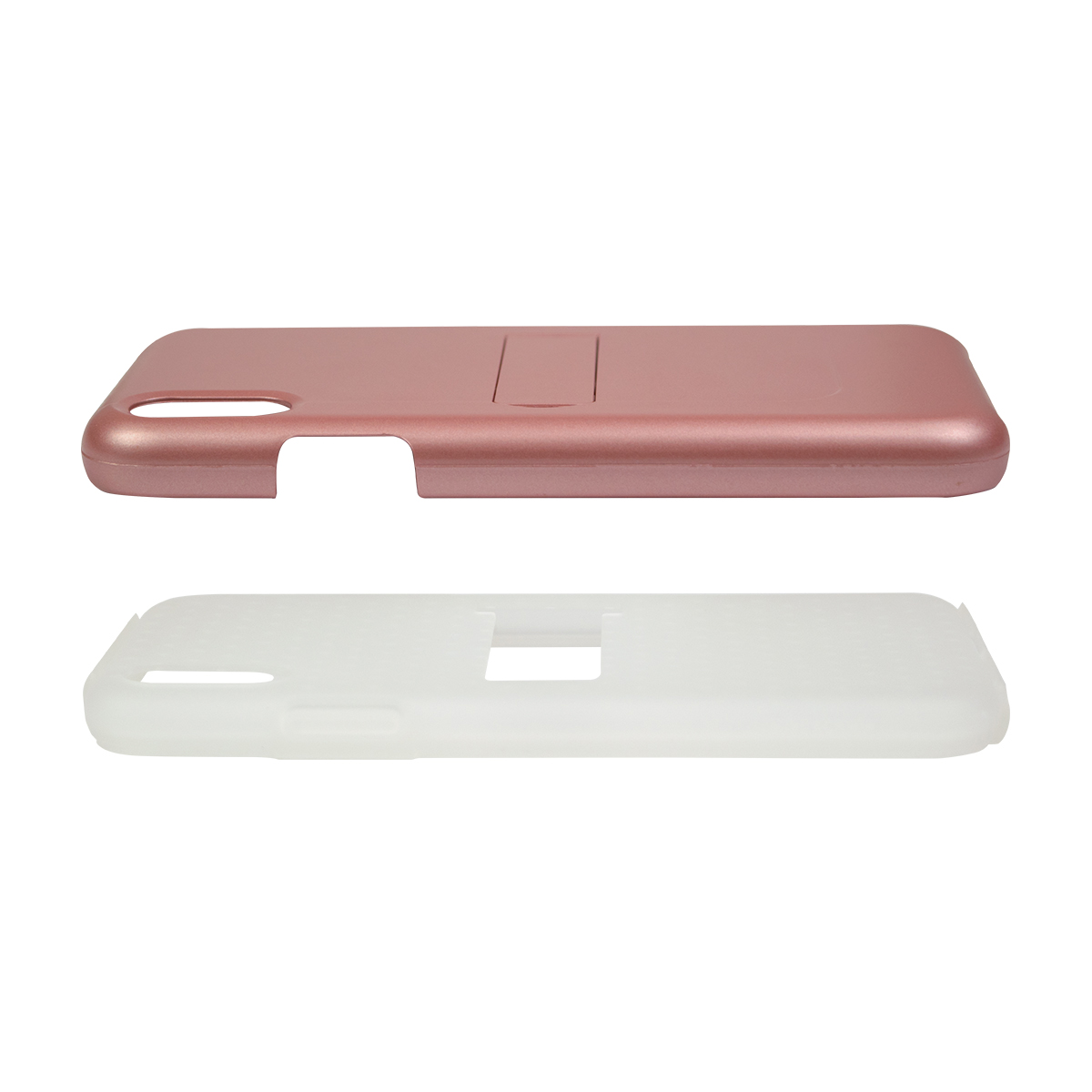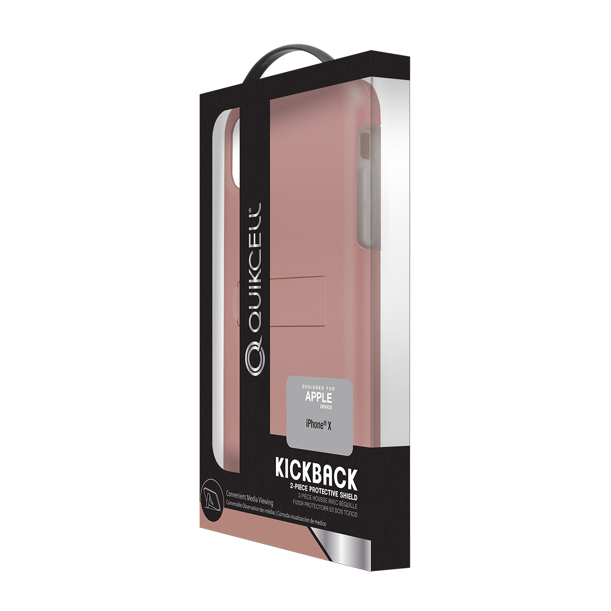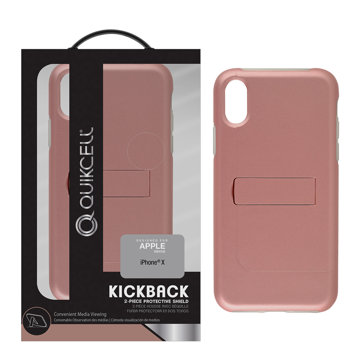 Quikcell Apple iPhone X/XS KICKBACK Dual-layer Kickstand Case - Rose Gold Metallic PC/Clear TPU