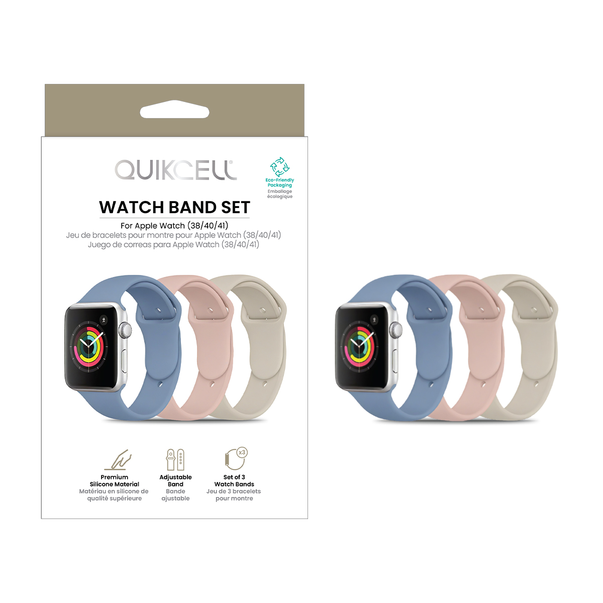 Quikcell Apple Watch Size 38/40/41 Band- 3 Pack -Starlight, Lavender Ash, Vintage Rose