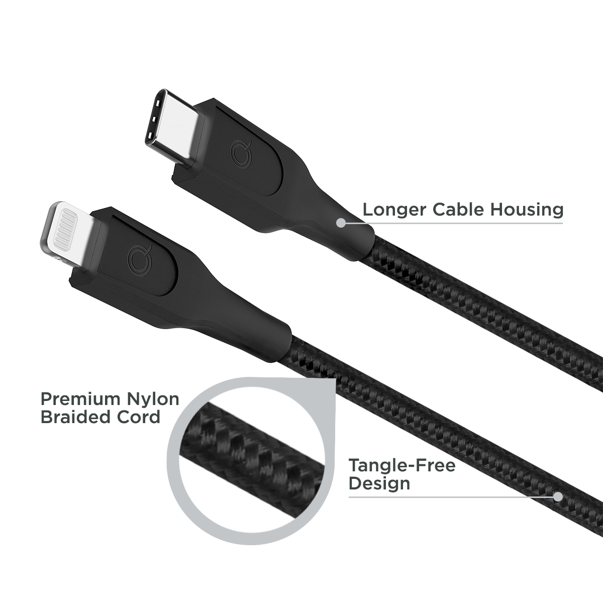Quikcell CHARGE & SYNC CABLE MFi Lightning to USB-C - 6ft - Black